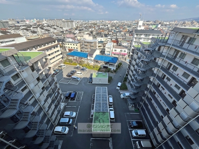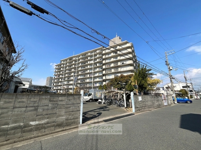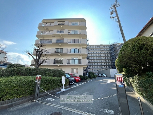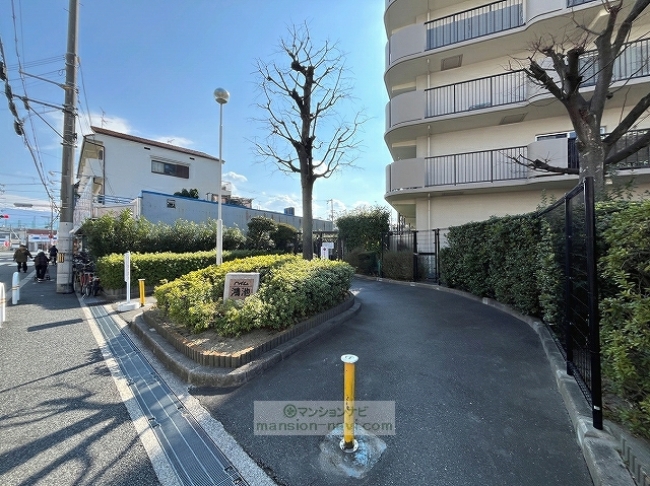 ハイム鴻池は、東・南・西向きのコの字型をしたマンションです。車の進入は北側道路からで、玄関は東側になります。北側道路の交通量は、多めです。昭和55年建築なので、そろそろ建て替えの話があるかもしれませんね。