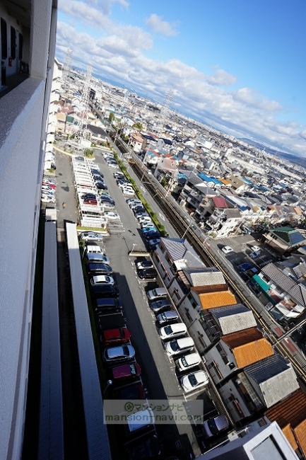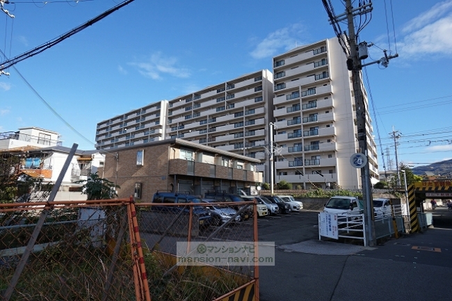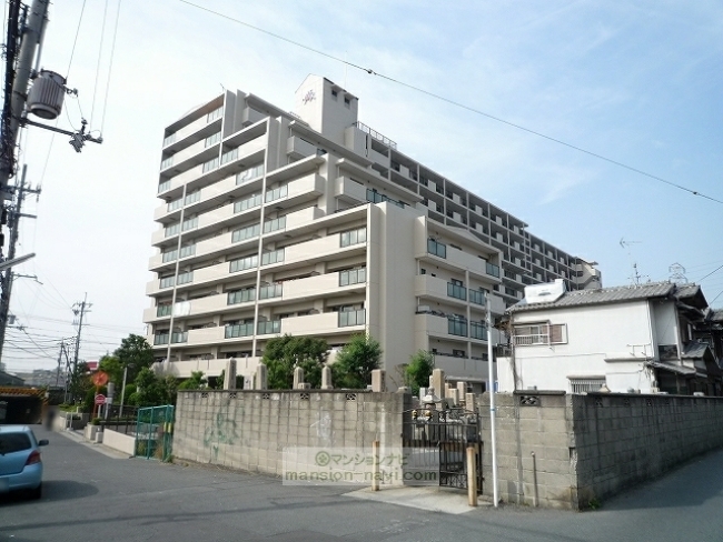 建物は、長方形の敷地にL字型に建っています。敷地の北側には、関西電力の鉄塔が建っています。平成20年に、マンション大規模修繕工事が行われています。