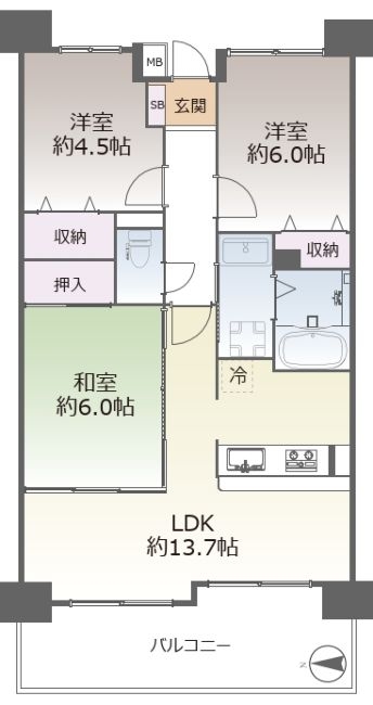 | 間取り | 3LDK | 地域・地区 | 第一種住居地域 |